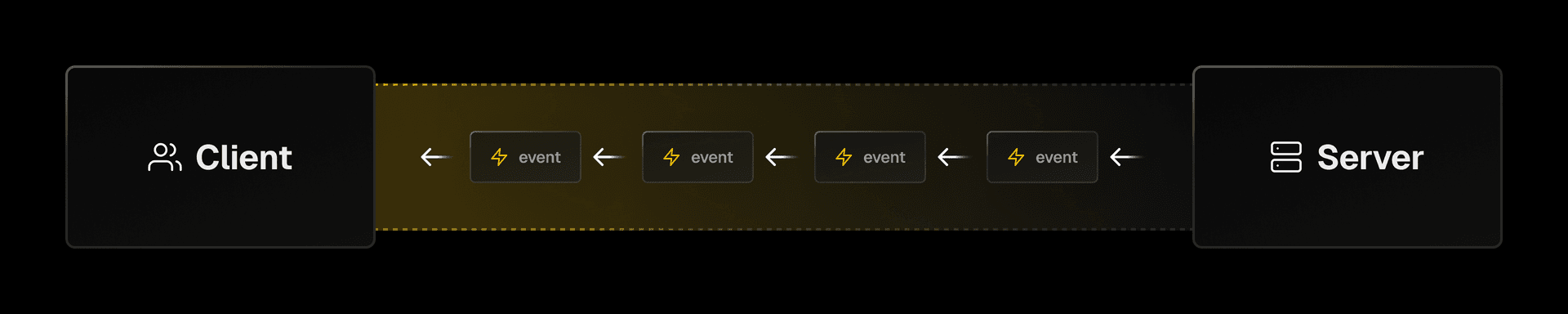 Whereas web streams close the HTTP connection once all the data has been sent, Server-Sent Events use a long-lived HTTP connection to ensure the server can send more events once they’re available. SSEs are popular for applications requiring real-time data, including AI providers such as OpenAI.
