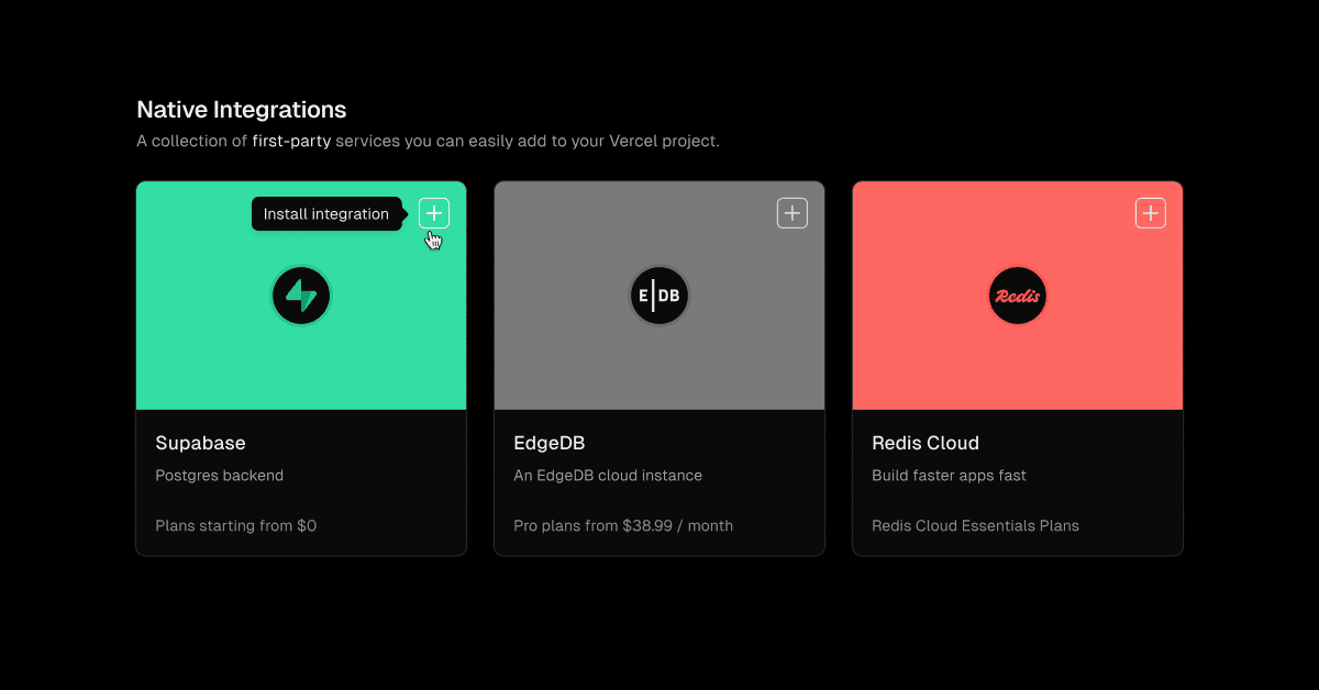 Since launching on the Vercel Marketplace, Supabase has seen a marked increase in adoption from Vercel’s developer base. The seamless integration and frictionless onboarding process have led to accelerated sign-ups, making it easier for developers to adopt both platforms in their projects.