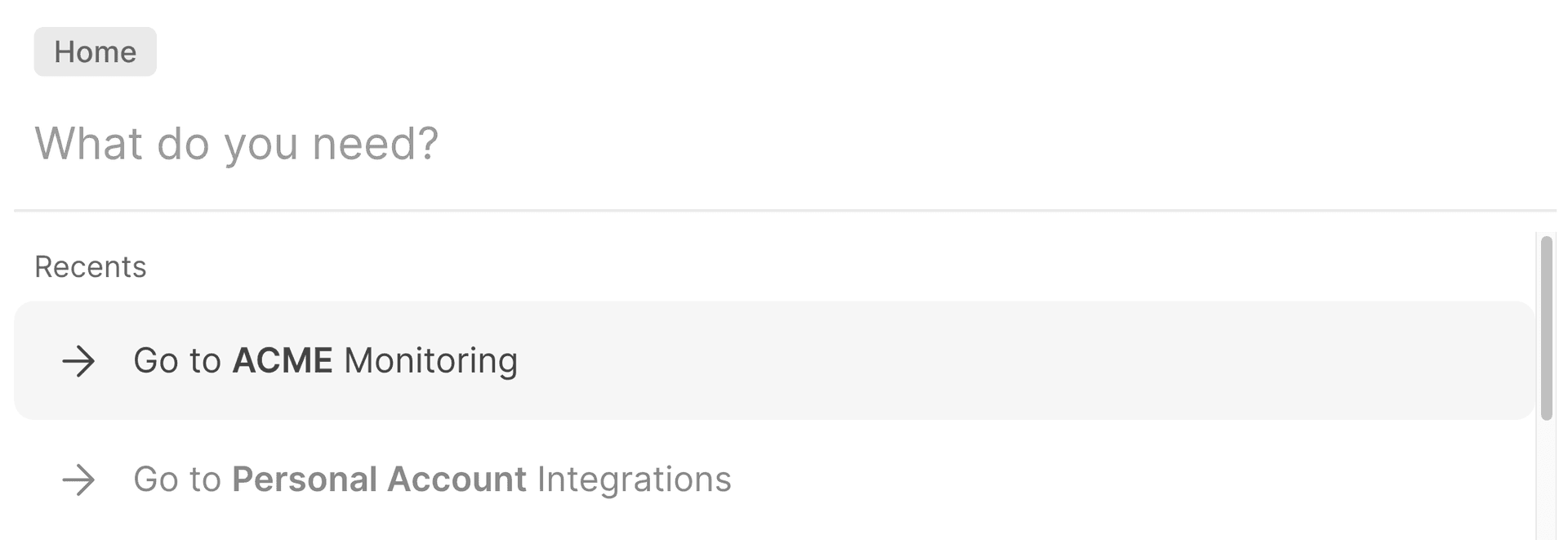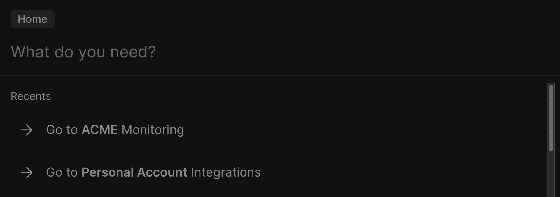 Because the purpose of the Command Menu is to get you to your desired goal in the quickest way possible, it also changes its behavior based on your surrounding context on the dashboard.