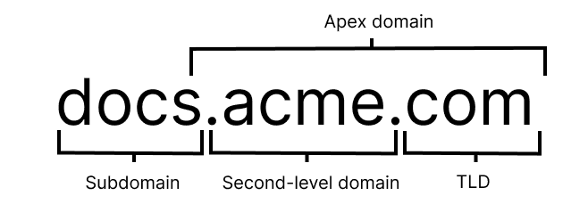 A subdomain is a more specific part of that domain that can be assigned to a particular part of your site, for example, , . This helps to blend both your brand, with the specificity of where the user may need to go. To add a subdomain to your Project, follow the instructions in the Add a custom domain doc. If you have bought the domain through Vercel, you can also point a subdomain to an external service through the Domains section of the dashboard. Subdomains are set through a CNAME DNS record.