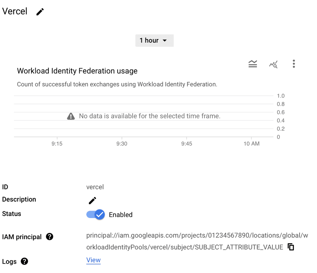 In the following example, you create a Vercel function in the Vercel project where you have defined the GCP account environment variables. The function will connect to GCP using OIDC and use a specific resource provided by Google Cloud services.