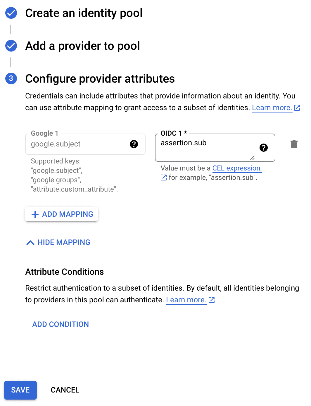 Workload Identity Pool Provider IDIAM & Admin -> Workload Identity Federation -> Pools -> Providers