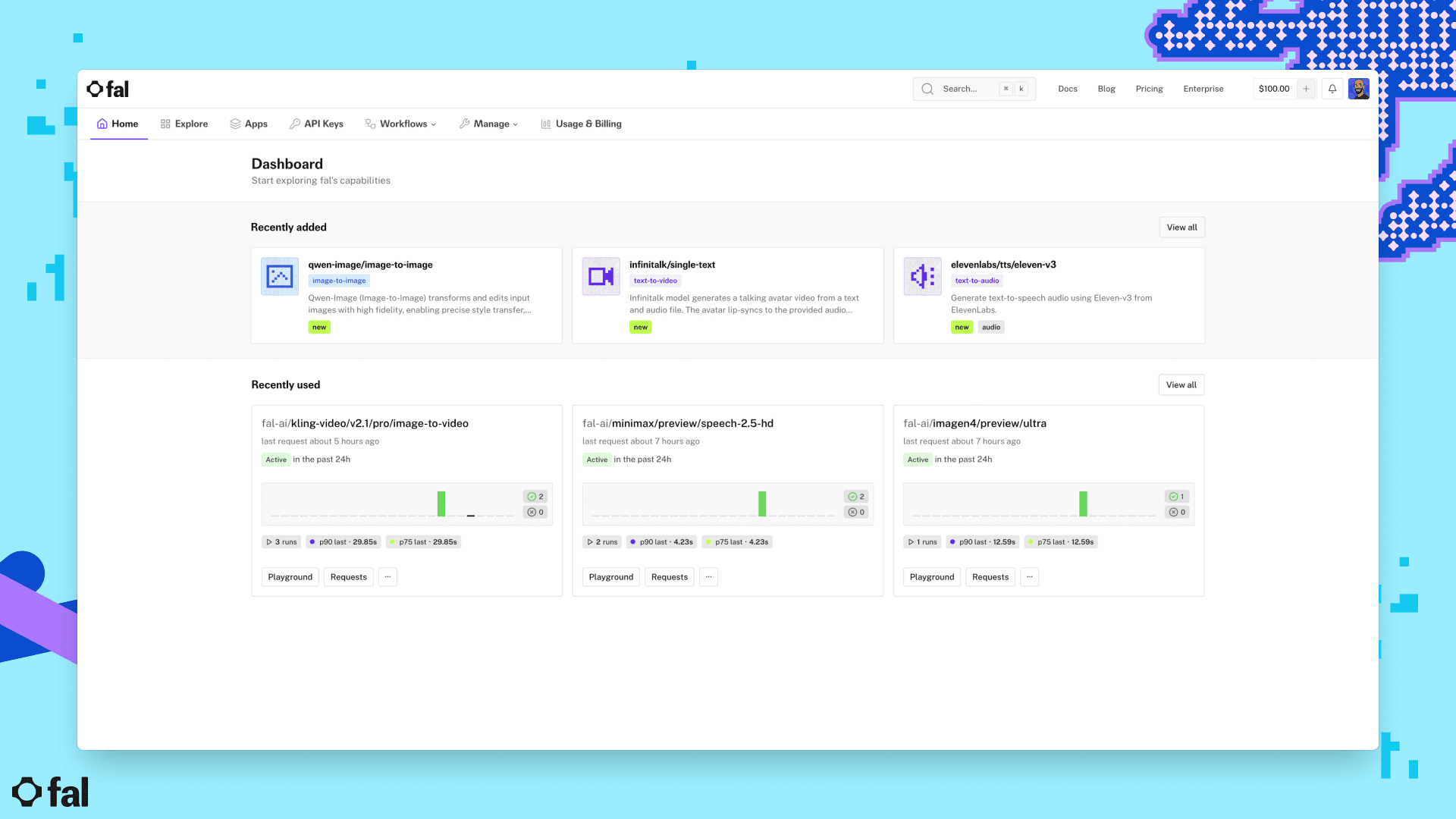 This integration creates an API Key and sets it in the environment variables of your selected apps, named FAL_KEY. This will ensure your applications using the fal.ai clients can make calls while keeping your credentials safe.