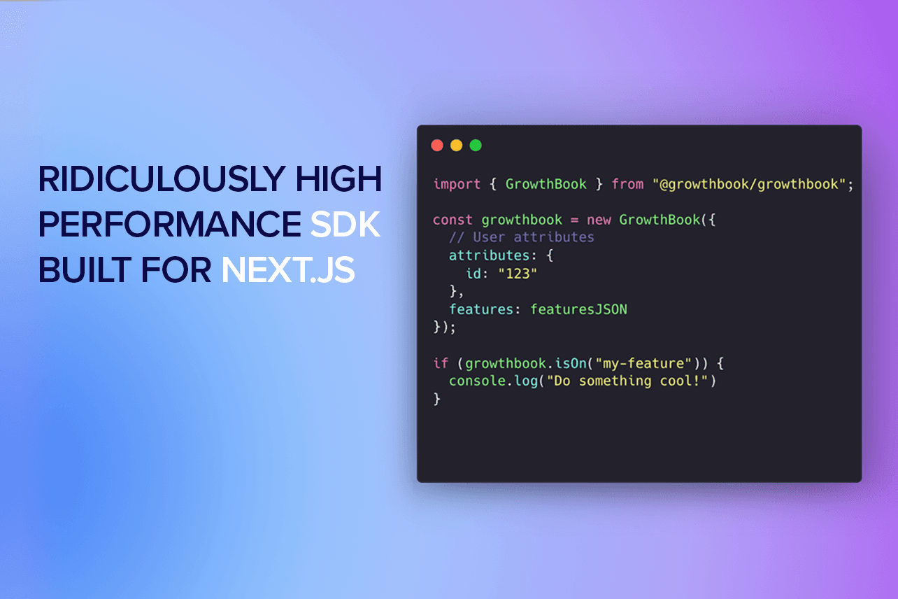 Installation is quick and easy. We will create a new account for you on GrowthBook Cloud and set you up with all of the required environment variables to quickly integrate our SDK into your code. If you enable Edge Config, we will also set up a webhook for you to keep feature definitions in sync automatically.