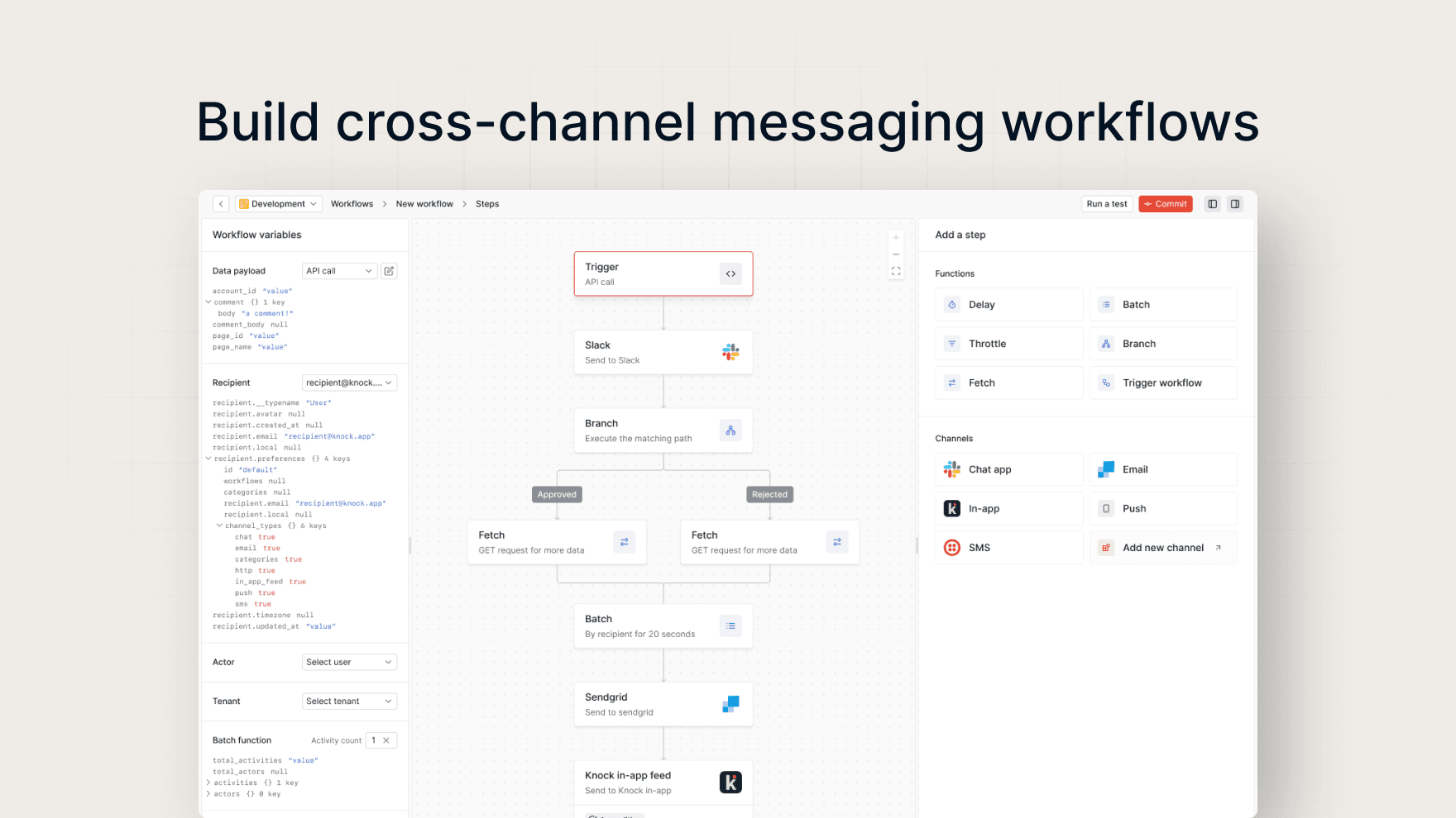 Knock is infrastructure for sending product and customer messaging. Ship cross-channel product notifications and lifecycle messaging that drives engagement, growth, and retention.