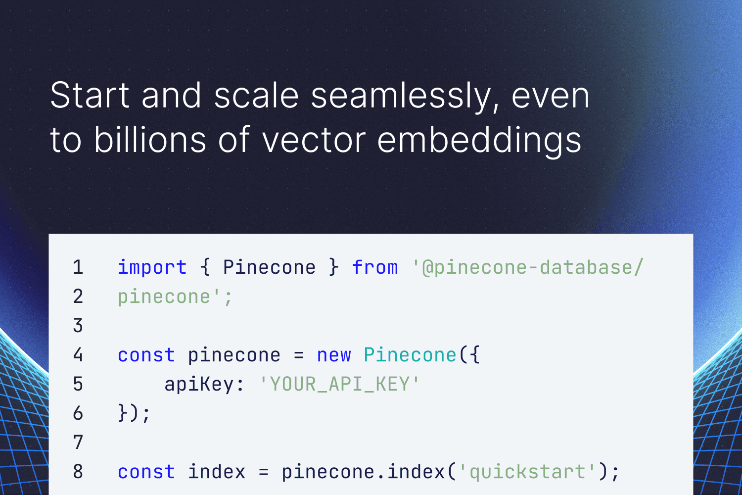 Pinecone provides the long-term memory for your Vercel AI projects. Using Pinecone with Vercel enables you to quickly set up and authenticate a connection to your Pinecone data/indexes, and then easily scale to support billions of data points. Get started for free with our Starter plan or choose a paid plan to support your production use cases.