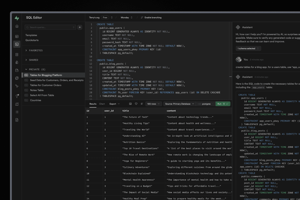 By integrating Supabase with Vercel, developers can leverage a Supabase Postgres Database, Auth, and Storage, Edge functions and Realtime while benefiting from Vercel's hassle-free deployment capabilities.